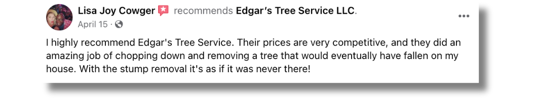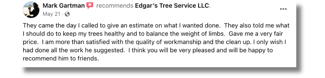 Trust Edgar’s Tree Service to handle all your tree service needs with the care and professionalism only a local business can offer.